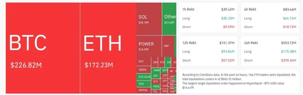 Según los registros de actividad comercial, el volumen de liquidaciones totales ascendió a 586,78 millones de dólares durante el último día. La mayoría de estas pérdidas se concentraron en las posiciones cortas o short, con un total de 467,46 millones de dólares evaporados mientras la criptomoneda buscaba establecer nuevos soportes de precio.