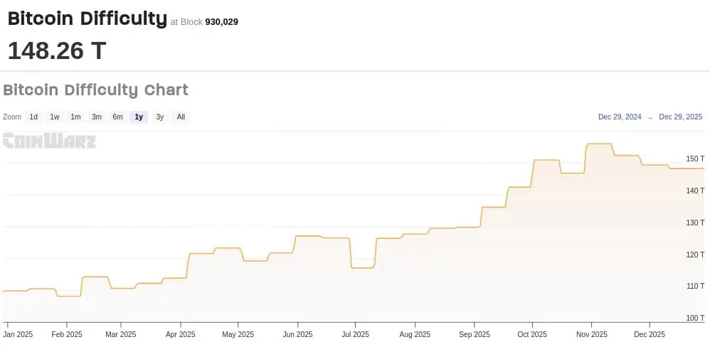 La dificultad de la minería de Bitcoin escaló a 148,2 billones a pocas horas de finalizar el 2025, reforzando la seguridad de la red blockchain más robusta del mundo.