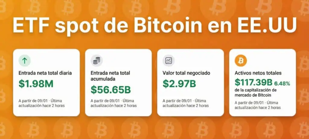 Resumen de flujos y activos netos en los ETF de Bitcoin en Estados Unidos.