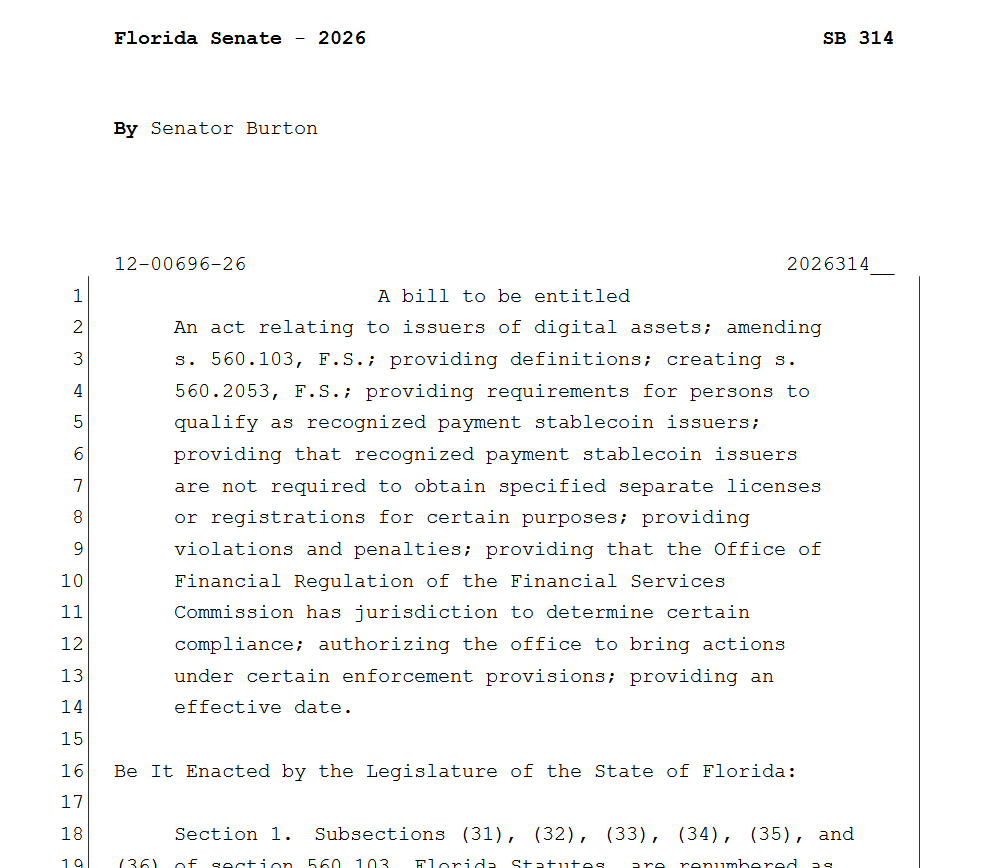 La Legislatura de Florida marcó un nuevo capítulo en la regulación financiera del estado, recientemente, al dar la luz verde al Proyecto de Ley del Senado 314. La iniciativa regulatoria, que aún espera la firma del gobernador Ron DeSantis, propone un marco estatal pionero para supervisar a las empresas que emiten activos digitales estables, conocidos como stablecoins.
