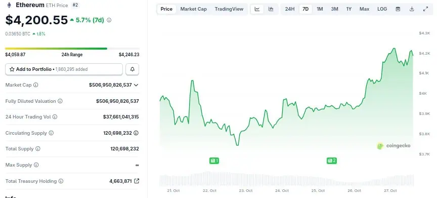 Los analistas interpretan esta acción no como una especulación a corto plazo, sino como un posicionamiento estratégico. Están acumulando mientras el precio cotiza sobre niveles clave, una señal de que su confianza en los fundamentos de la criptomoneda supera el miedo a la incertidumbre macroeconómica. La estabilidad del precio de ETH esta semana, que se situó en torno a los 4.200 dólares al cierre de esta edición, parece estar respaldada por esta demanda silenciosa.