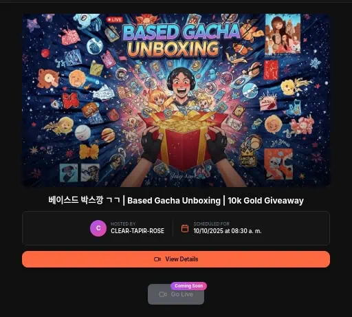 El lanzamiento oficial se realizó el 10 de octubre, con una transmisión inaugural a cargo del usuario @LH_0302, quien abrió 500 cajas sorpresas o blind boxes en directo. Este evento buscó captar la atención de la comunidad y marcar el tono de lo que la plataforma pretende ofrecer: espectáculos en vivo que combinan trading, entretenimiento y recompensas en cadena.