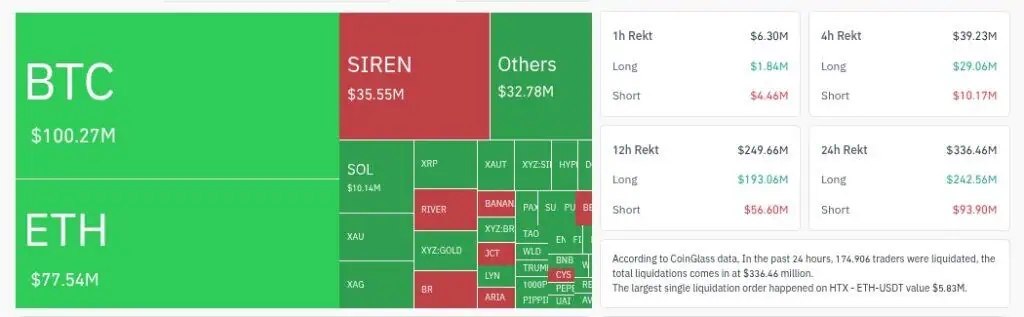 Históricamente, cuando el precio de la criptomoneda cae de forma repentina, las posiciones de aquellos operadores que apostaban por una subida continua (conocidas como posiciones «largas») se cierran automáticamente si no cuentan con el respaldo suficiente. En las últimas 24 horas, el volumen de estas liquidaciones se ha acercado a los 400 millones de dólares en todo el mercado de criptomonedas.