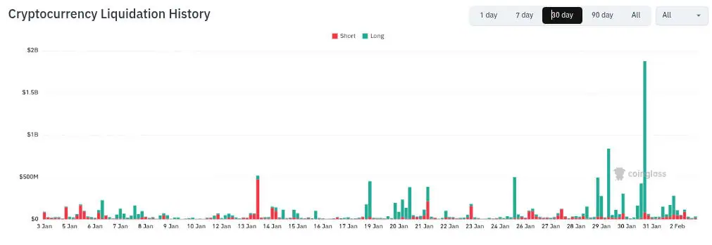 Según los registros de la plataforma Coinglass, la jornada del 30 de enero se ha convertido en el décimo evento de liquidación más grande en la historia de las criptomonedas, afectando a más de 300.000 operadores, que vieron cómo sus garantías se evaporaban en cuestión de horas.