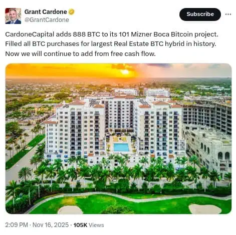La reciente compra de 888 bitcoins por parte de Cardone Capital ha llamado la atención del mercado por varias razones. No es simplemente una adquisición más; es una movida estratégica que ocurre justo en un momento delicado, cuando muchos inversores minoristas prefieren reducir riesgos o esperar a que los precios se estabilicen. La firma ha invertido $84 millones de dólares en plena fase de corrección, revelando una confianza sólida en el valor de Bitcoin a largo plazo, más allá de las fluctuaciones temporales.
