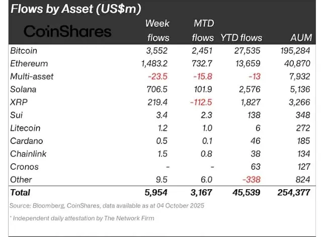 La semana pasada se consolidó el liderazgo de Bitcoin no solo en volumen de inversión, sino también en confianza de los mercados. El informe semanal #254 de CoinShares indica que Bitcoin recibió flujos por 3.550 millones de dólares, la cantidad más alta en una sola semana desde que existen registros detallados de fondos digitales.