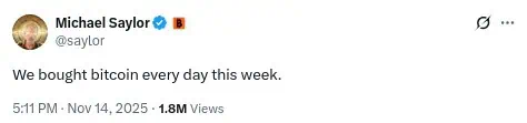 Michael Saylor, presidente ejecutivo de Strategy y uno de los mayores defensores corporativos de Bitcoin, es uno de los que está aprovechando la caída del precio de BTC. Saylor anunció que su empresa compró BTC todos los días de esta semana. Su estrategia, contraria a la tendencia, demuestra un principio fundamental en el mundo de las criptomonedas: el dinero inteligente entra cuando otros salen, es decir, cuando el mercado se encuentra en incertidumbre o miedo.