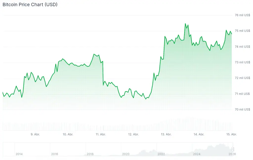 Considerando el panorama anterior, los analistas señalan que Bitcoin atraviesa la segunda mitad de abril dentro de una fase decisiva marcada por la volatilidad y las expectativas económicas globales. El precio se mantiene en una franja de consolidación que oscila entre los 73.000 y los 76.061 dólares, una zona que muchos describen como un punto de equilibrio inestable.