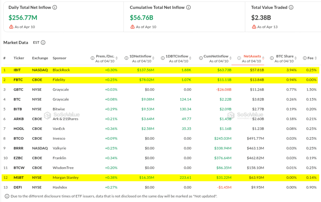 Los ETFs de Bitcoin inician la semana con flujos positivos, impulsados por el liderazgo de BlackRock y la incursión de Morgan Stanley.