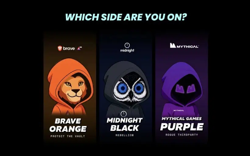 Los usuarios deben acceder a través de la plataforma Fanon, donde eligen una de las 3 facciones disponibles: Brave Orange, Midnight Black y Mtythical Purple.