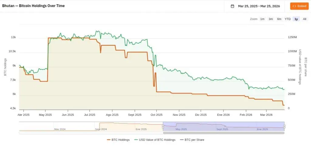 Los movimientos registrados en marzo, que forman parte de un proceso de «drawdown» o retiro progresivo, responden a una política de liquidez planificada. Según los datos de plataformas como Arkham y el comportamiento de su billetera soberana, Bután ha estado ejecutando ventas en tramos controlados de entre 5 y 10 millones de dólares. Esta metodología sugiere que el gobierno busca financiar proyectos inmediatos sin generar un impacto disruptivo en el precio de mercado, actuando con la prudencia de un inversor institucional de alto nivel.