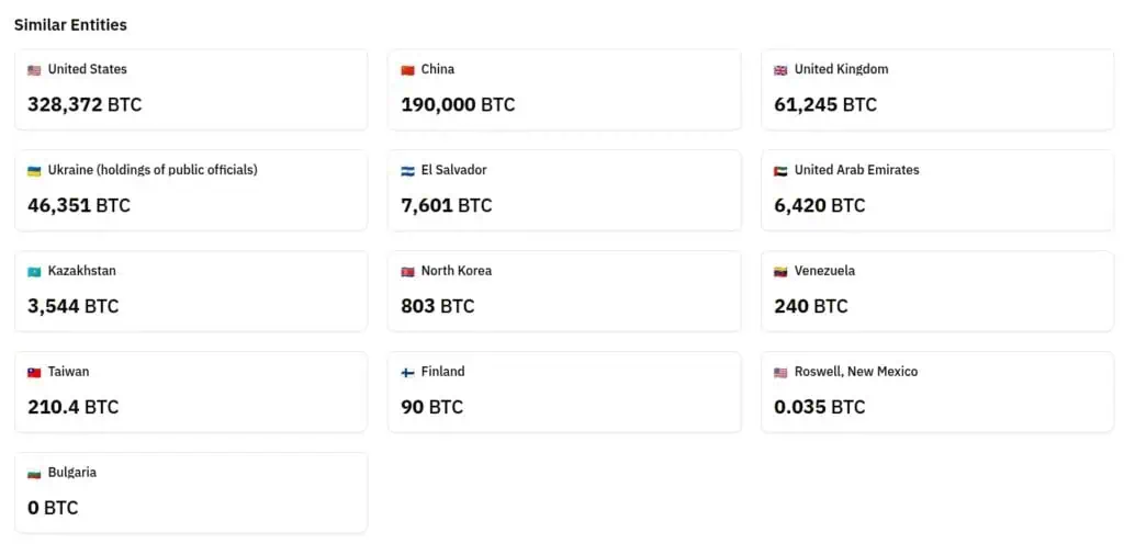 Bután no está solo en este tablero de ajedrez financiero, aunque su enfoque es único por ser un productor primario. Al observar el mapa global de entidades similares, vemos que otros países mantienen posiciones de gran relevancia, aunque por razones distintas. Estados Unidos, por ejemplo, encabeza la lista con más de 328.000 BTC, seguido por China con 190.000 BTC y el Reino Unido con más de 61.000 BTC. En estos casos, la mayoría de los fondos provienen de incautaciones legales más que de una estrategia de minería activa.