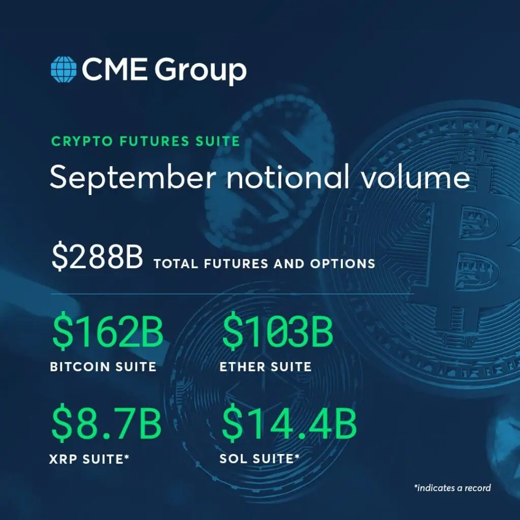 En paralelo, el volumen diario promedio en agosto alcanzó 411.000 contratos, mostrando un crecimiento del 230% respecto al mismo periodo del año previo. Además, durante la semana del 25 de septiembre, se reportaron más de 1.010 grandes tenedores de posiciones abiertas en productos vinculados a estos activos, evidenciando una participación institucional sólida y en expansión.