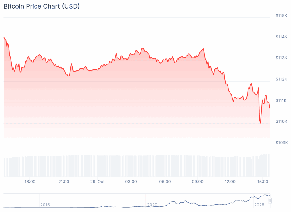 Bitcoin, que cotizaba en torno a los 116.000 dólares antes del anuncio, cayó brevemente por debajo de los 111.000 y se estabilizó en los 111.470 dólares, al momento de escribir este artículo.