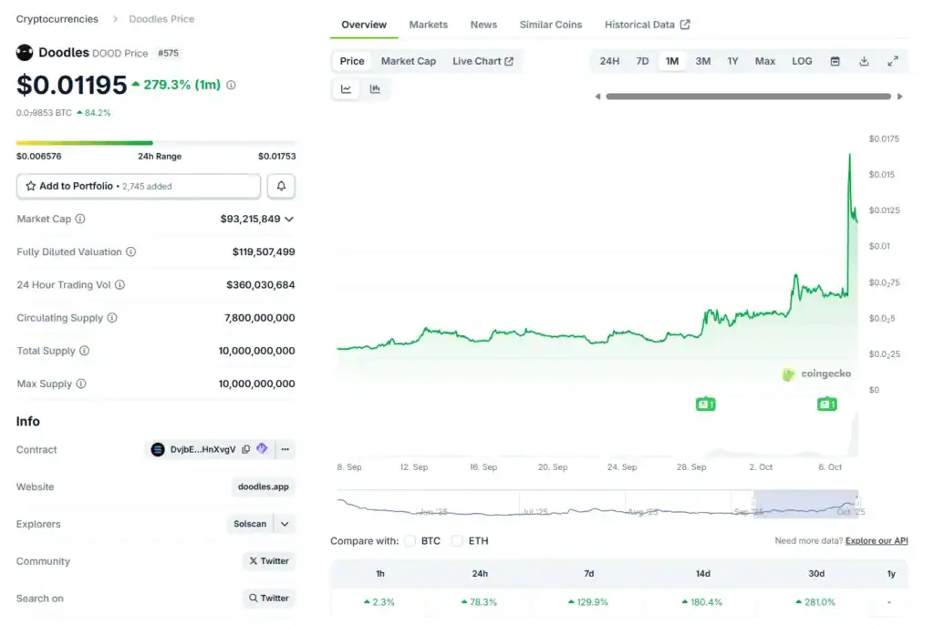 El vibrante lienzo del mundo digital se ilumina con colores y creatividad, atrayendo miradas hacia Doodles, un proyecto NFT que ha trascendido los límites de la imaginación para convertirse en un fenómeno. Con un crecimiento que supera el 265% en el último mes, este curioso proyecto artístico ha capturado la atención del ecosistema cripto, generando una masa crítica de seguidores y consolidándose como un referente de innovación y participación comunitaria.