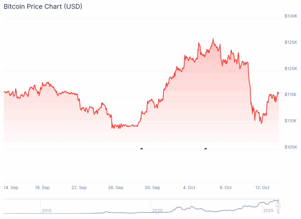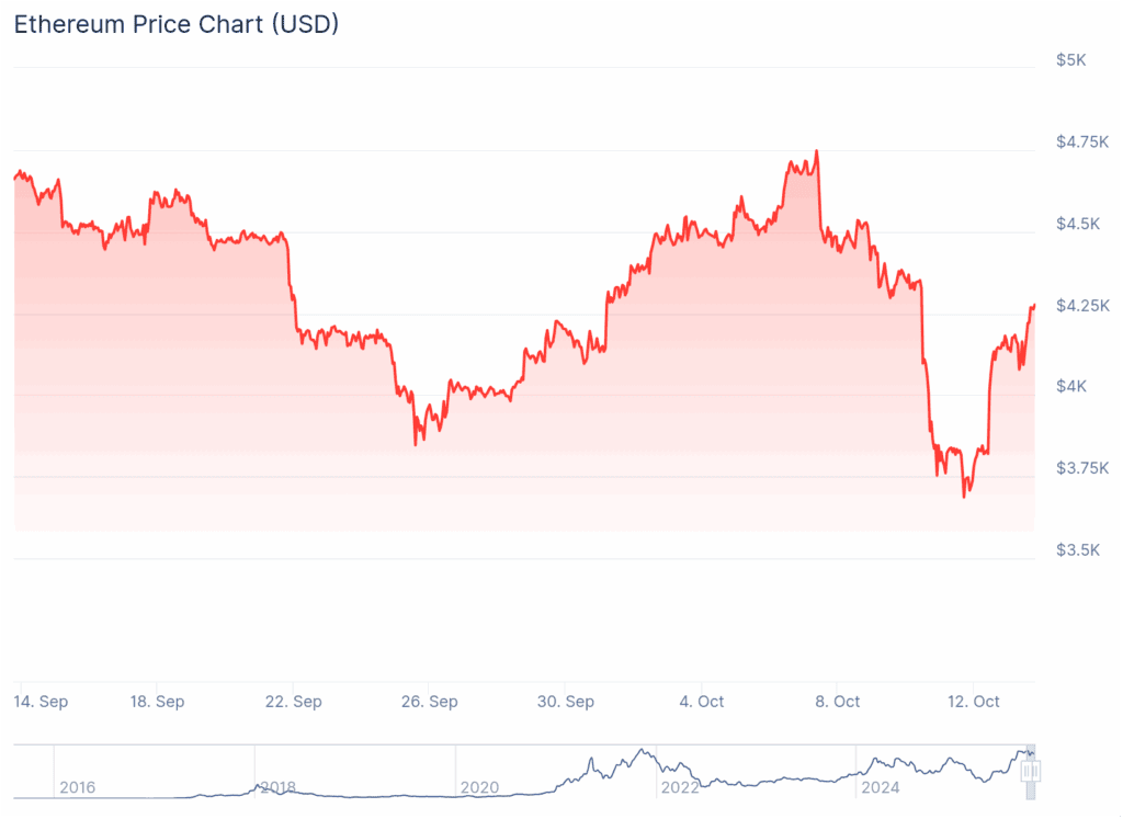 Tras varios días de volatilidad, el mercado cripto comenzó a mostrar signos de recuperación. Para el momento de escribir este artículo, Bitcoin cotiza nuevamente por encima de los 116.000 dólares, recuperando parte del terreno perdido durante la liquidación masiva de operaciones de la semana pasada, cuando llegó a caer por debajo de los 110.000 dólares por unidad. Ethereum también logró superar los 4.200 dólares, un nivel que, actualmente, analistas técnicos consideran clave para proyectar un nuevo máximo en el corto plazo.