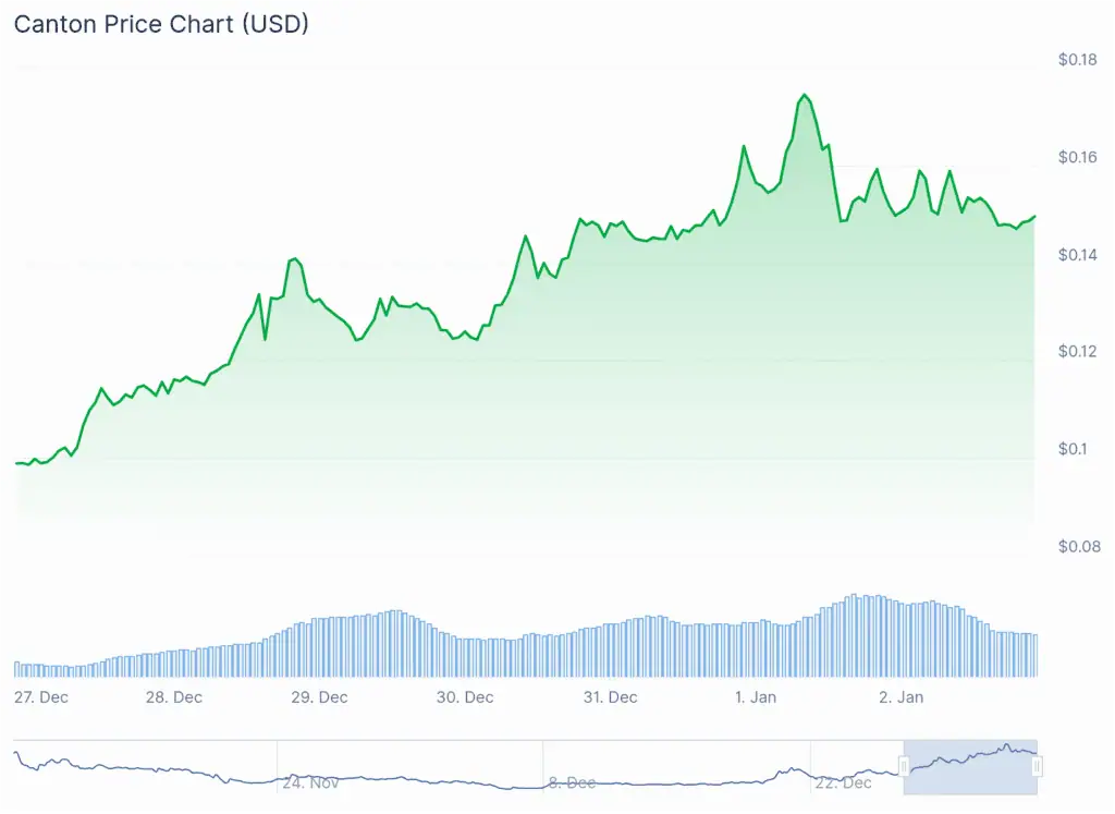 Canton Network leads the weekly market with a 48% increase in a context where Bitcoin and Ethereum are still in a consolidation phase.