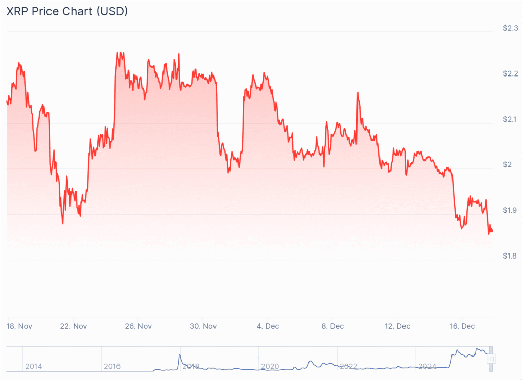 In particular, an inverted head and shoulders pattern is emerging, with the price of XRP now forming the right shoulder. This final stage, if it breaks above the upper resistance, typically triggers a strong upward move. Simultaneously, a double bottom is forming around the $1,81 level, where the market has twice rejected a move below that level, indicating that sellers are becoming exhausted in the face of strong demand absorbing supply.