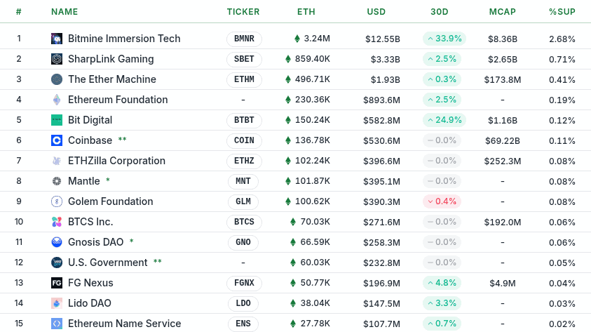 Además, con $13.400 millones de dólares en activos digitales y liquidez, y una participación que representa el 2,7% del suministro total de ETH, Bitmine ha superado a numerosos competidores en el mercado institucional. Su creciente confianza en esta criptomoneda, combinado con su participación activa en eventos clave del sector y un desempeño sólido en los mercados bursátiles, demuestra su consolidación como una fuerza influyente.
