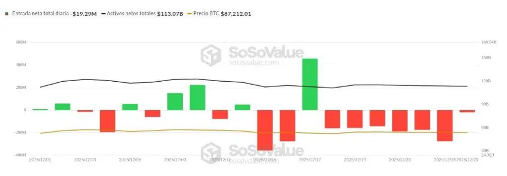 Los datos más recientes, proporcionados por la plataforma de análisis financiero SoSoValue, confirman que el eje de gravedad de los fondos cotizados ha sufrido un desplazamiento temporal, pero significativo, durante el mes de diciembre.
