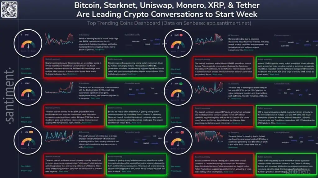 El análisis de Santiment también revela un mercado cripto donde múltiples activos se mueven con narrativas fundamentales propias, sugiriendo una salud más amplia en el sector.