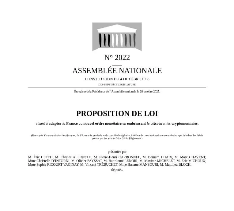 Bien que l'UDR ne dispose que d'une représentation limitée à l'Assemblée nationale (16 sièges sur 577), son texte réglementaire a suscité un vif intérêt auprès des analystes, des développeurs et des acteurs du secteur financier. C'est la première fois qu'un cadre législatif aussi complet pour les actifs numériques est présenté en France, avec des propositions susceptibles de transformer en profondeur l'architecture monétaire du pays.