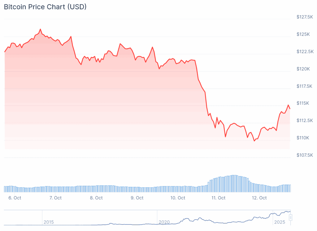 La imposición de aranceles del 100% a productos chinos y los controles adicionales a las exportaciones de software provocaron una reacción inmediata en los mercados financieros. Bitcoin cayó más de un 12% desde sus máximos históricos de 126.000 dólares hasta rondar los 110.000 dólares por unidad, el pasado 11 de octubre, arrastrando consigo a tokens de menor capitalización que sufrieron pérdidas aún más pronunciadas.