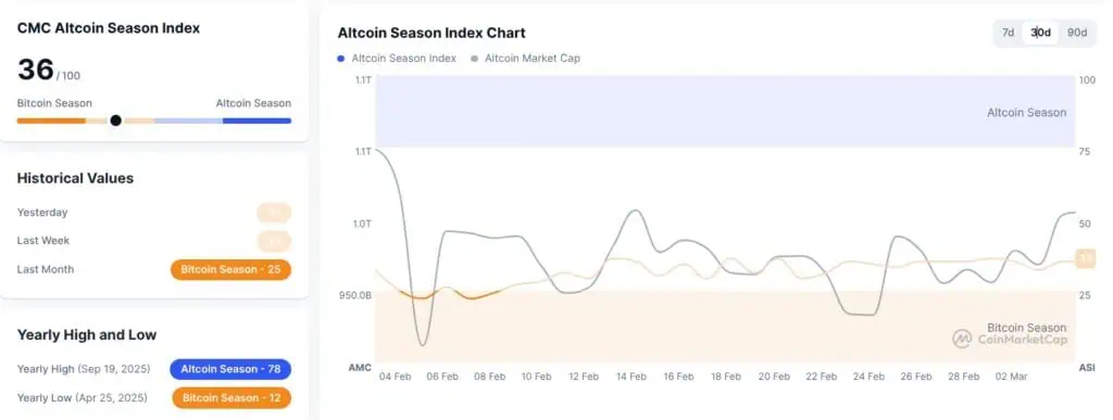 Algunos participantes del mercado aseguran que la narrativa de una temporada de altcoins tiende a morir cuando los precios están en su punto más bajo y solo resucita cuando los activos ya han experimentado subidas considerables. Para este sector de la comunidad, el hecho de que casi nadie hable de las altcoins en la actualidad es una señal positiva, basándose en la premisa de que las mejores entradas financieras ocurren cuando el activo carece de atención mediática y el sentimiento de derrota es generalizado.