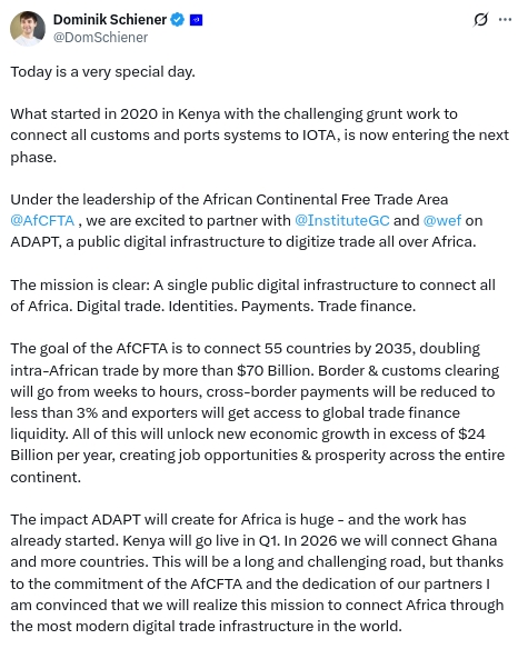 África ha lanzado ADAPT, una plataforma impulsada por la tecnología IOTA que busca digitalizar el comercio continental, reducir costos transfronterizos y duplicar el intercambio intraafricano hacia 2035.