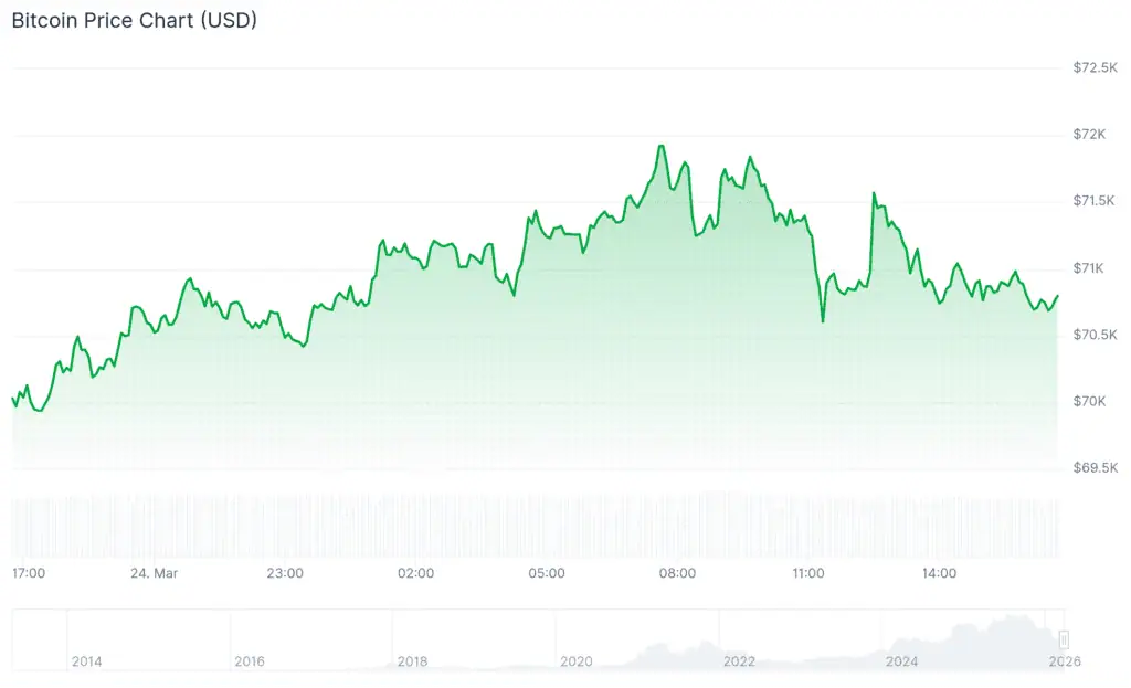 Aunque los precios de Bitcoin, Ethereum y Solana se sostienen con solidez, el mercado aún enfrenta resistencias que limitan un avance más amplio. Según las cotizaciones más recientes, Bitcoin ronda los 70.700 dólares con un incremento de 1,3% en las últimas 24 horas, un indicador de que el sentimiento general es de pausa y observación tras los sobresaltos de los últimos días en los mercados tradicionales.