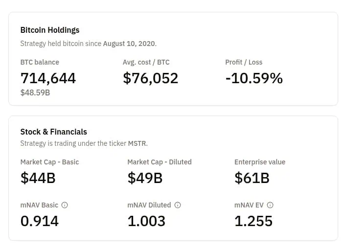 Al cierre de esta edición, la firma de Saylor acumula un total de 714.644 BTC, tras una adquisición reciente de 1.142 BTC por un valor de 90 millones de dólares. A precios del mercado, la tenencia de BTC de Strategy supera un valor de 48.800 millones de dólares.