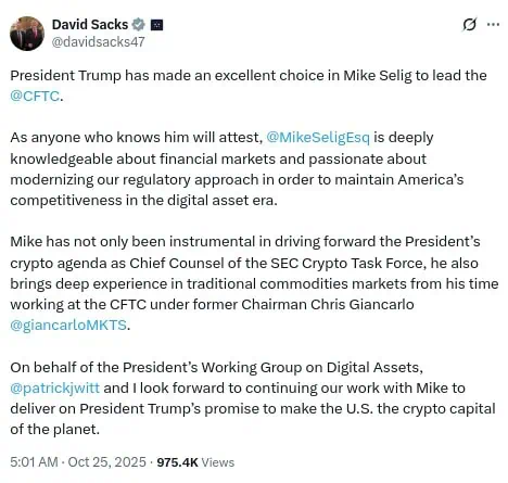 Según Sacks, Selig “tiene un profundo conocimiento de los mercados financieros y le apasiona modernizar nuestro enfoque regulatorio para mantener la competitividad de Estados Unidos en la era de los activos digitales”.