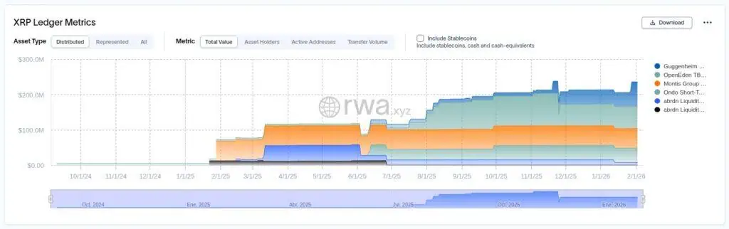 El XRP Ledger se ha convertido en uno de los pilares más sólidos dentro del mercado de los activos del mundo real. En solo un par de años, la tokenización de bienes físicos ha pasado de ser un experimento de laboratorio a una de las vertientes más rentables del ecosistema blockchain. Según registros de plataformas especializadas como RWAxyz, el volumen de activos tokenizados que operan sobre la red de Ripple ha crecido de forma notable gracias a su eficiencia operativa y a un entorno regulatorio más claro que ha favorecido la adopción institucional.
