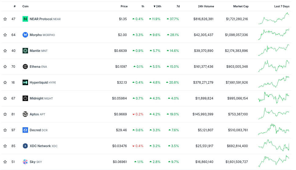 El protocolo NEAR lidera el crecimiento semanal cripto con un alza del 36%, impulsado por el lanzamiento de IronClaw y la narrativa de IA.