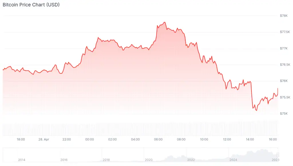 Según los datos consultados en CoinGecko, Bitcoin ha corregido un 5% en las últimas 48 horas, situándose cerca del soporte técnico de los Dolarów 75.000 por unidad. Este movimiento es interpretado por los especialistas como una toma de beneficios saludable tras el ascenso del 20% registrado durante el mes de abril.