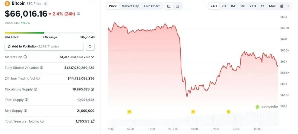 Bitcoin cotiza nuevamente en 66.000 dólares tras una caída diaria del 2%. Analizamos las causas que están impulsando este nuevo retroceso y las proyecciones alcistas que mantienen los expertos para este 2026.