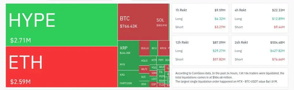 Además, el panorama actual del mercado se ha visto agravado por datos recientes de derivados que muestran señales de estrés. Según los datos consultados en la plataforma Coinglass, que sigue el mercado de derivados de criptomonedas, se han registrado más de 500 millones de dólares en liquidaciones de posiciones apalancadas en las últimas 24 horas. Este fenómeno de liquidación forzada de posiciones largas y cortas acelera las caídas cuando los precios perforan umbrales de margen técnicos, intensificando el movimiento bajista de forma automatizada sin que responda necesariamente a un cambio en el valor intrínseco del activo.
