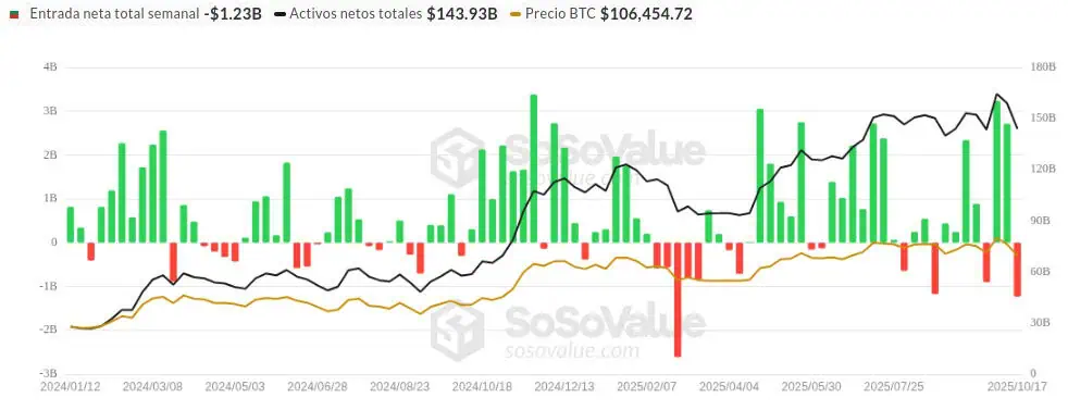 El precio de Bitcoin ha vivido una semana de gran volatilidad, con una caída significativa que llevó su cotización brevemente por debajo de los USD 104.000. Este fuerte movimiento ha generado un impacto en la confianza del mercado, especialmente entre los inversores institucionales que operan en Wall Street. La venta masiva se tradujo en una salida de capital sin precedentes en los ETF spot de Bitcoin, que en los últimos meses habían sido el motor principal de entradas constantes en el mercado.