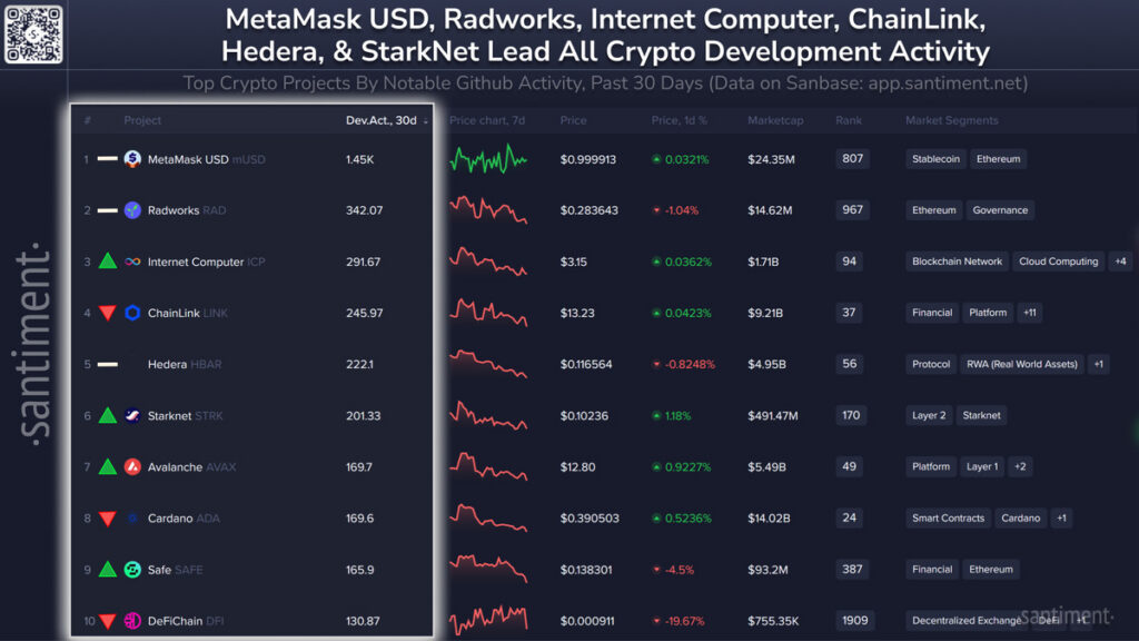 Ranking de innovación: Los 10 proyectos cripto con mayor actividad de desarrollo en GitHub en el último mes.