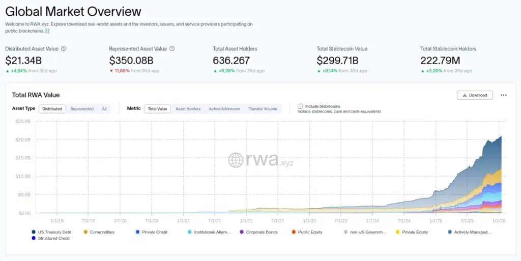 El mercado de los activos tokenizados supera los 21.000 millones de dólares en enero de 2026, transformando la deuda pública y el crédito privado en liquidez diaria.