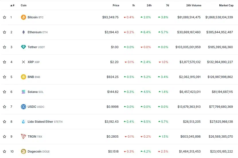La semana en curso ha estado marcada por movimientos intensos en los precios, con Bitcoin liderando el repunte general del mercado. El activo más valioso del ecosistema se ubica en 93.349 dólares, con una capitalización superior a 1.868 billones de dólares y un volumen de negociación que supera los 81.089 millones. Este comportamiento ha generado un efecto de arrastre sobre otros criptoactivos, aunque con variaciones en la magnitud del impacto.