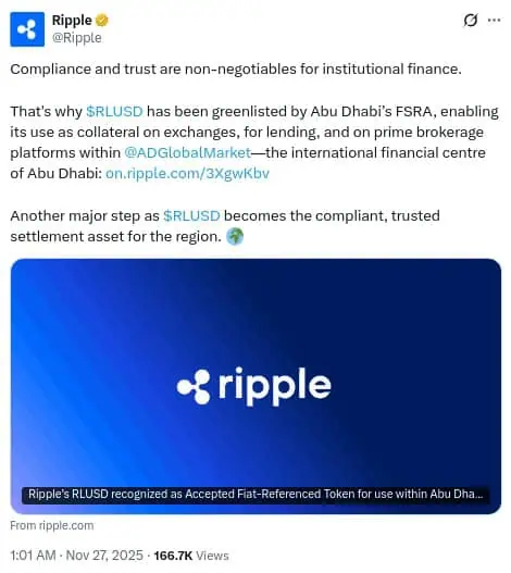 “El reconocimiento por parte de la FSRA de RLUSD como un token referenciado a fiat refuerza nuestro compromiso con el cumplimiento regulatorio y la confianza, dos aspectos innegociables en lo que respecta a las finanzas institucionales”, aseguró McDonald.