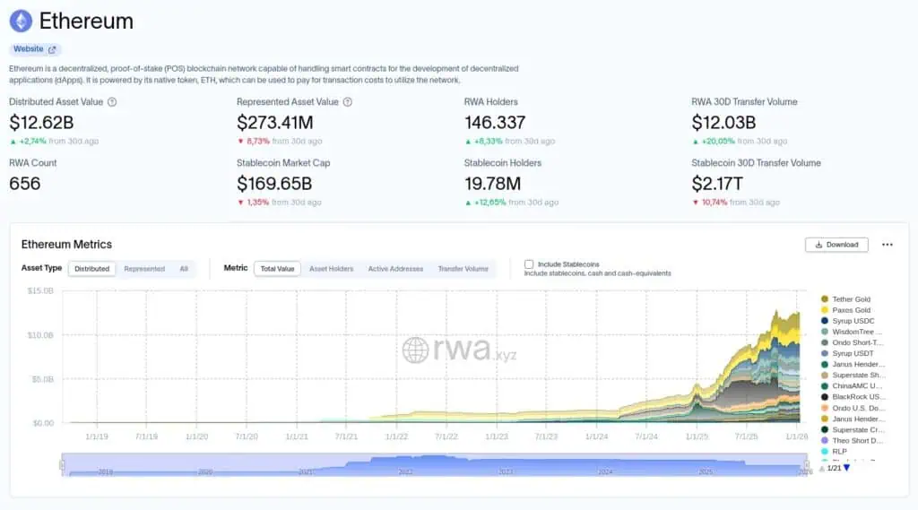 Panorama general del ecosistema de Activos del Mundo Real (RWA) en la red Ethereum.