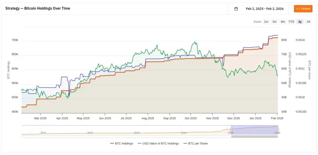 A pesar de que la volatilidad ha golpeado con fuerza los activos de riesgo en los últimos días, la firma estadounidense mantiene su hoja de ruta con una firmeza que desafía las advertencias de los analistas más cautelosos. Con este último movimiento, la reserva corporativa de Strategy alcanza la cifra de 713.502 BTC, una que consolida su liderazgo absoluto como la tesorería institucional con mayor tenencia de esta criptomoneda a nivel global.