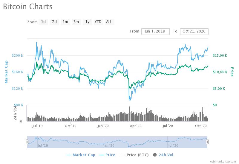 Desde junio de 2019, Bitcoin (BTC) no veía la marca de los 13.000 $ USD. De hecho, su máximo alcanzado en lo que va de 2020 fue de 12.400 $ USD, mientras que en junio del año pasado superó los 13.900 $ USD por unidad, como muestra el siguiente gráfico.