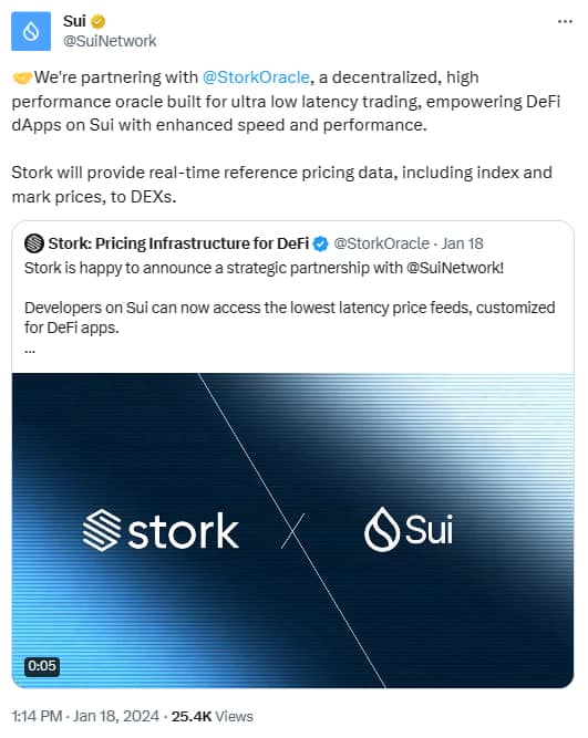 La Fundación Sui se ha asociado con el protocolo de oráculos blockchain Stork para poner a disposición de los creadores y usuarios datos externos confiables en tiempo real.