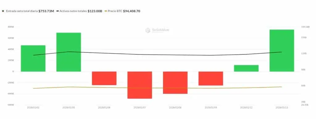 Adicionalmente, los datos suministrados por BlackRock, el gigante de la gestión de activos, muestran el regreso del capital a su ETF de Bitcoin. Las nuevas entradas en el fondo cotizado IBIT sugiere que la demanda institucional de Bitcoin se mantiene robusta y que los grandes actores financieros están aprovechando los niveles actuales para acumular posiciones. Otros ETFs de Bitcoin, como el de Fidelity, Grayscale y Bitwise, también han registrado entradas positivas durante la jornada, una tendencia que consolida a Bitcoin como un componente estructural dentro de las estrategias de inversión.