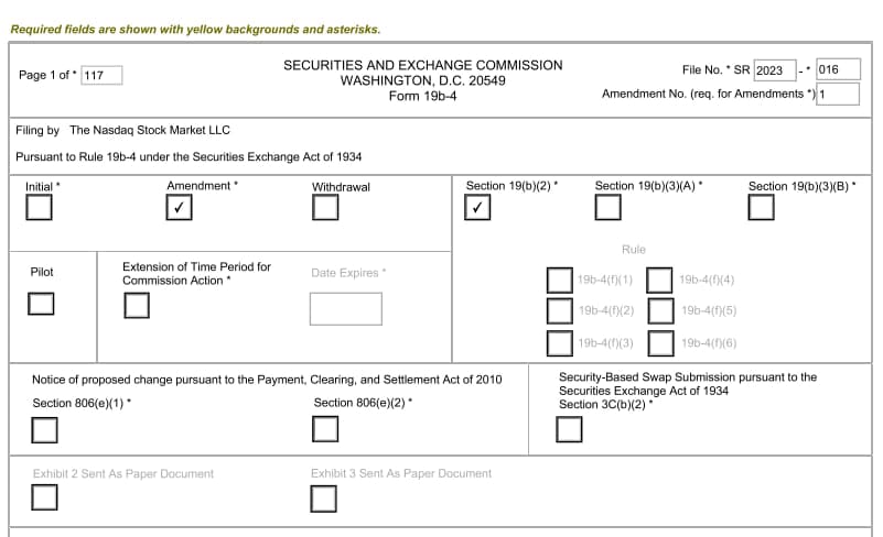 El Nasdaq, la Bolsa de Valores de Nueva York (NYSE) y el Chicago Board Options Exchange (CBOE) publicaron, recientemente, las presentaciones modificadas de BlackRock, Grayscale Investments, Fidelity, Hashdex y Bitwise.