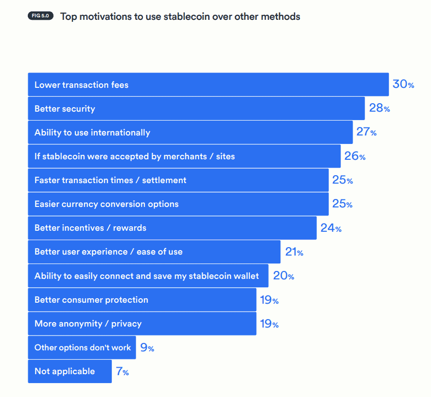 Un aspecto relevante del estudio es la disposición de los usuarios a integrar estas soluciones con la banca tradicional. El 77% de los encuestados afirmó que abriría una billetera de monedas estables si su banco principal ofreciera el servicio, y un 71% mostró interés en utilizar tarjetas de débito vinculadas a estos saldos.