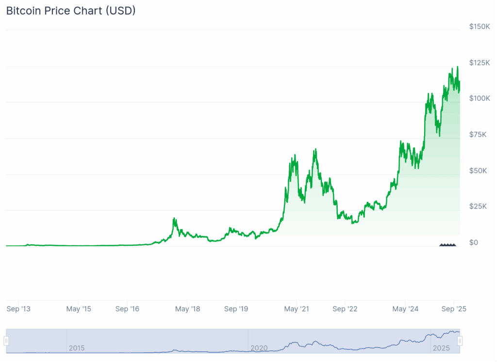 Bitcoin pasó de valor cero a unos pocos centavos en sus primeros años, mientras que hoy cotiza por encima de los 109.000 dólares, con proyecciones que lo sitúan en rangos de 150.000 a 200.000 dólares en escenarios de consolidación institucional. Esta trayectoria de crecimiento exponencial no responde únicamente a dinámicas de oferta y demanda, sino a una creciente legitimación estructural.